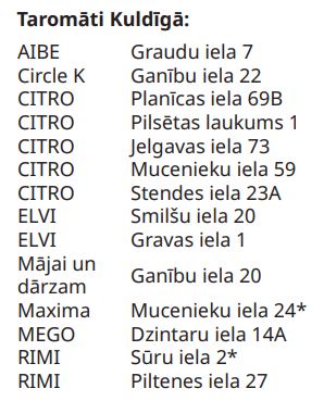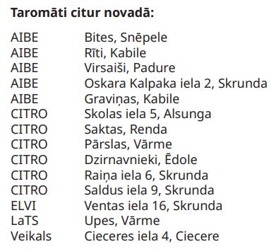 | Snēpeles skola – Kuldīga | 7.35 – 7.55 | 1 – 5 |